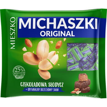 Michaszki - cukierki z orzeszkami arachidowymi w czekoladzie. Tradycyjne, wytwarzane od lat według oryginalnej receptury, idealne do codziennego łasuchowania w gronie rodzinnym