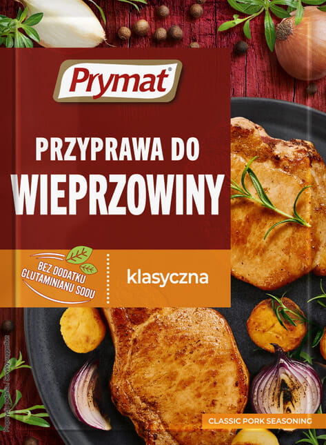 Przyprawa do wieprzowiny klasyczna Prymat to kompozycja ziół i przypraw, skomponowana specjalnie do potraw z tego rodzaju mięsa. W skład mieszanki wchodzi między innymi: czosnek, papryka słodka, kminek, gorczyca biała, tymianek, kolendra, cząber, rozmaryn, majeranek, pieprz czarny, chili, ziele angielskie, liść laurowy, sól oraz suszone warzywa. Dzięki obecności Przyprawy do wieprzowiny klasycznej Prymat w naszej kuchni przygotowywane mięsa za każdym razem będą zachwycać wyjątkowym smakiem